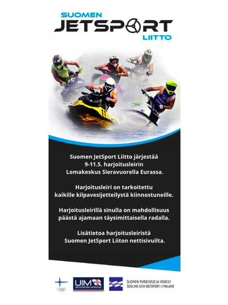 JetSki Vuoksi Race -kilpailu järjestetään Imatralla 8. kesäkuuta. Tapahtuma toimii vesijettien Suomen mestaruussarjan avauskilpailuna sekä osana Baltic Sea JetSki Series -sarjaa. Kilpailukeskus sijaitsee Imatralla Vuoksen Kalastuspuistossa, ja kilpailut tapahtuvat Vuoksessa Kalastuspuiston edustalla. Ennakkoilimoittautuminen (päättyy 3.6.2024) Kilpailukutsu